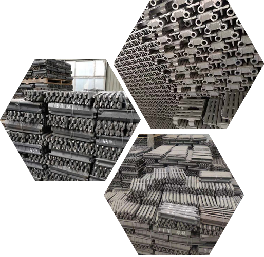 公司主要產品有各種鍋爐配件,包括爐排,主動片,副片,三爪,四爪,活芯爐排,鏈輪,手孔,爐門 , 冷拔45#鋼爐排軸,煤閘板,老鷹鐵等各種牌號的灰口、瑪鋼、球墨鑄鐵和鑄鋼件,鍋爐配件年產量2萬多噸